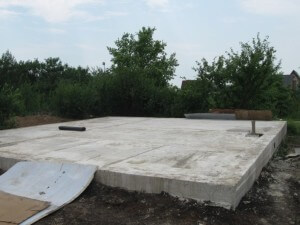 В таком фундаменте бетон укладывается по всей площади будущего здания, включая форму, поддерживающую каркас. Арматурная сетка, уложенная в два слоя, придает прочность фундаменту, а большая площадь уменьшает нагрузку на грунт. Высота основания включает в себя надземную (10 см) и подземную (40 см) части. Перед формированием двух слоев арматуры, укладывают гидроизоляцию. Подготовленная арматура заливается бетоном, которому дают время затвердеть. После этого формируют арматурный каркас для будущей формы. Для препятствия вытекания бетона, крепкий каркас изнутри выстилается рубероидом или толстой клеенкой.