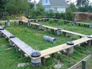 - расширенные у основания столбы вкапывают ниже промерзания грунта на 20-30см;