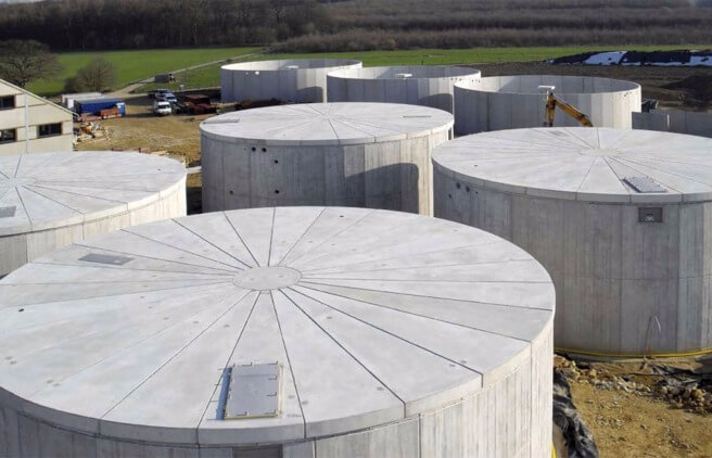 Железобетонные резервуары – вместилище для хранения жидкостей, которые состоят из конструктивных элементов, сделанных из железобетона. Они являются одними из наиболее распространенных хранилищ, которые эксплуатируются в производстве, промышленности, сельском и водопроводном хозяйстве. Это происходит благодаря их относительно небольшой стоимости и долговечности. Чаще всего в них хранят воду или нефть. Эти резервуары обладают небольшой теплопроводностью, поэтому жидкие продукты, хранимые в них, испаряются меньше, чем, допустим, в металлических.
