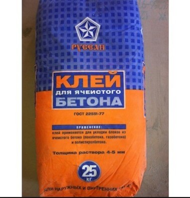 Монтажный клей для ячеистого бетона — сухая смесь, состоящая из вяжущего вещества, песка и добавок. Использованием клея достигается повышенная прочность соединения и высокая теплоизоляция.