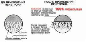 - Сие гидроизоляционное средство не оказывает никаких пагубных воздействий на строительную смесь. Обработанные Пенетроном бетонные сооружения сохраняют все свои положительные характеристики. В том числе и паропроницаемость.