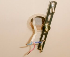 Крюк без замедлений помещают в раствор, пока он не успел застыть и излишки смеси убирают. Дожидаются охлаждения раствора до комнатной температуры, произойдет это спустя 2 часа и более. После окончательного схватывания гипсовой смеси приступают к крепежу осветительного прибора.